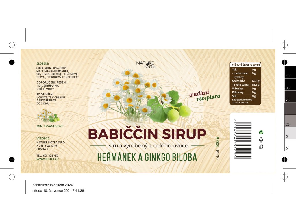 Babiččin bylinný sirup - Heřmánek-Ginkgo Biloba 500 ml