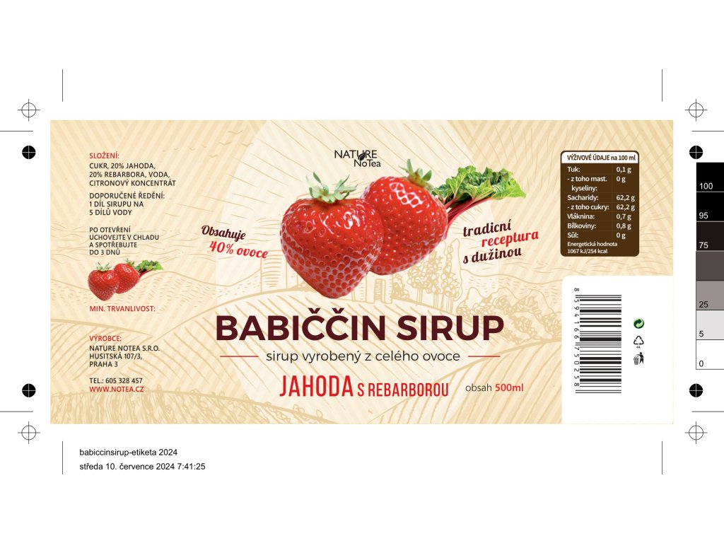 Babiččin ovocný sirup - Jahoda s rebarborou 500 ml