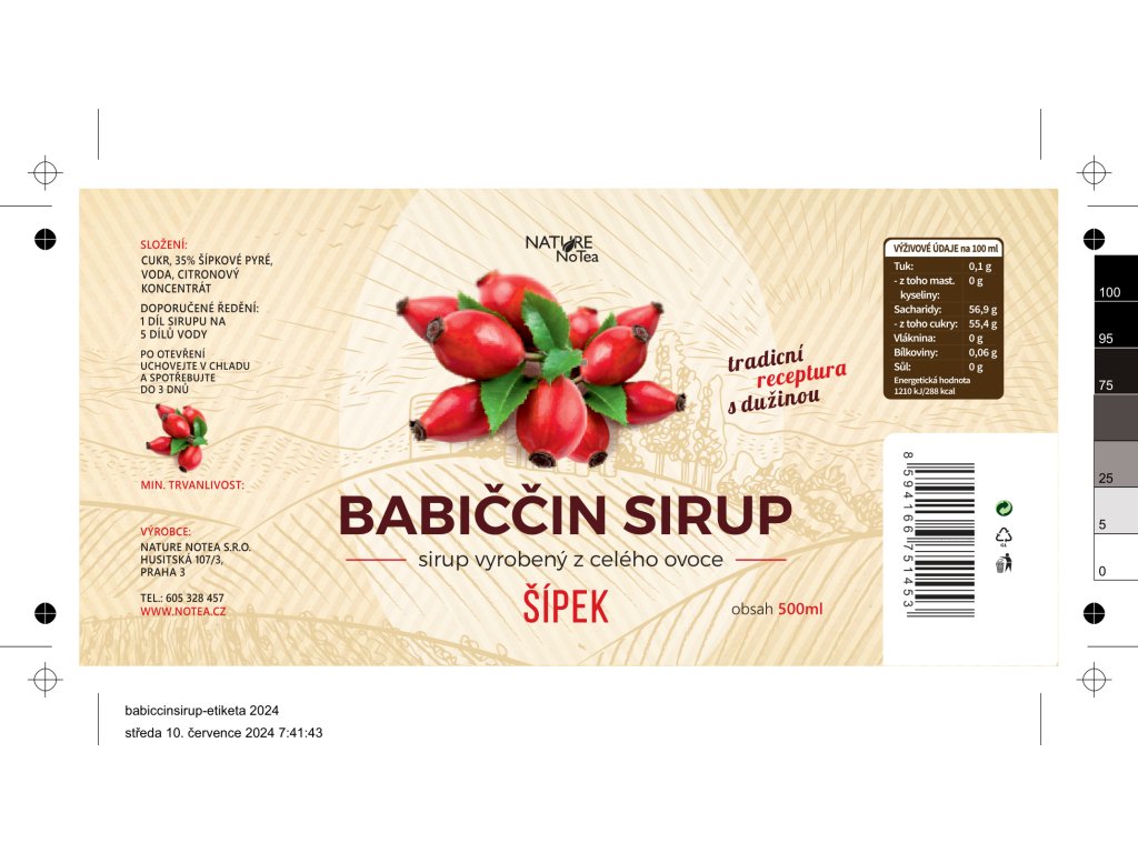 Sirup je bez zbytečné chemie v podobě konzervantů, éček, aromat nebo barviv - sirup obsahuje pouze šípkové pyré, vodný macerát konopí, citronovou šťávu, cukr a vodu.